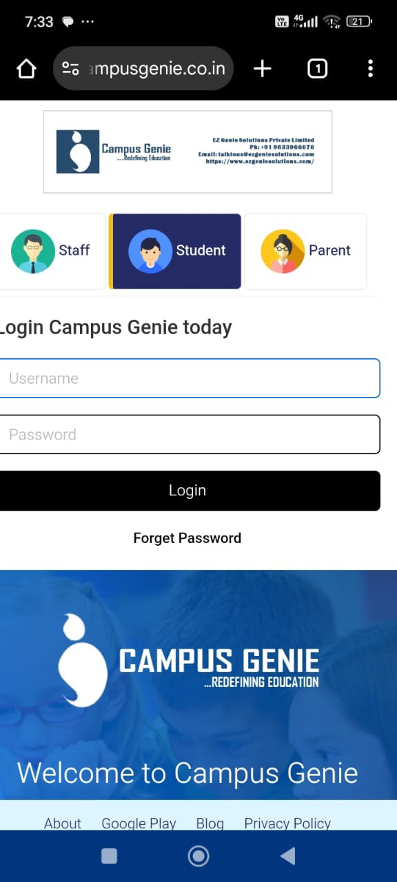 Chrome browser on your mobile and type your campus url (https://sdc.campusgenie.co.in) in the search bar
