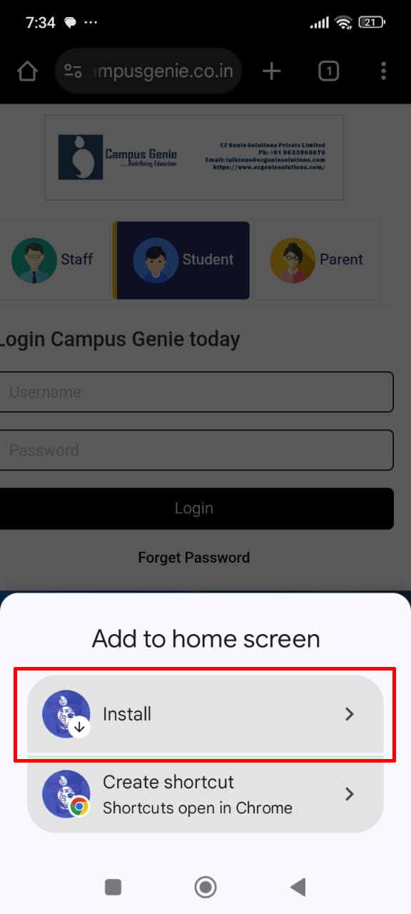 Click on the icon right side of search bar to install Campus Genie on your device